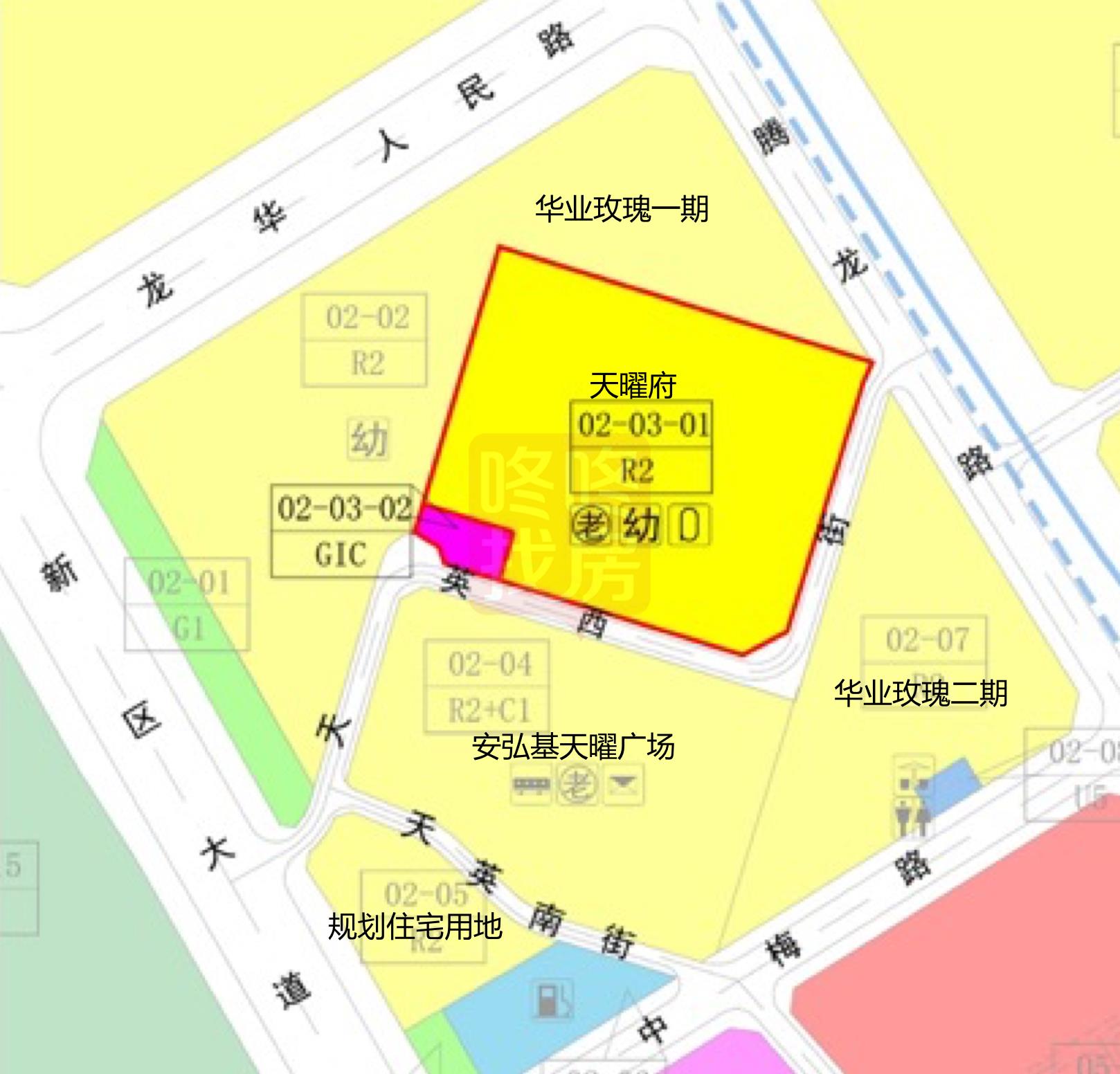 天曜府具体位于龙华民治街道,地块东临腾龙路、天英巷,南临天英西街。