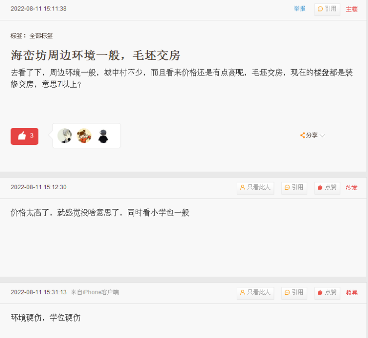 以近期人气还不错的海峦坊为例,就有人看好这个项目地段,毕竟它就在即将开通的地铁12号线宝田一路地铁站上。但是有更多的人吐槽开发商好像在“赶客”!