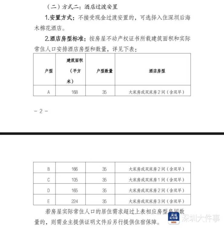 记者从南山区应急管理局了解到,第二种为“酒店过渡安置”,不接受现金过渡安置的,可选择入住深圳后海木棉花酒店,按房屋不动产权证书所载建筑面积和实际常住人口安排酒店房型和数量。