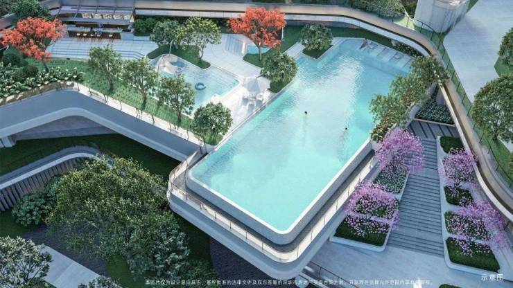 据现场置业顾问介绍,深铁前海时代尊府邀请知名设计团队,打造以一园六境、三层立体退台设计的园林空间,构建了“云谷、云峰、云海”三重云境园林,十八项景观体系。