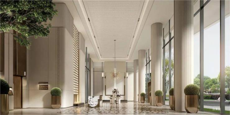 小区设计无雨归家动线,直抵奢华入户大堂,双入户大堂、酒店式落客主入口,美学吊灯、艺术玻璃、精致墙面点缀其中。