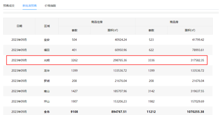 要知道,光明今年的新盘供应量不在少数,仅9月份光明新批预售商品房住宅就有3262套,占全市预售新房供应的35.8%。