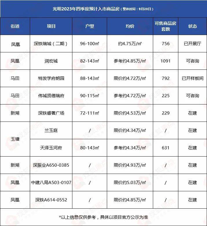 那么接下里的四季度,光明还有哪些新盘将供应呢?还会有新盘可能接棒“日光”的吗?