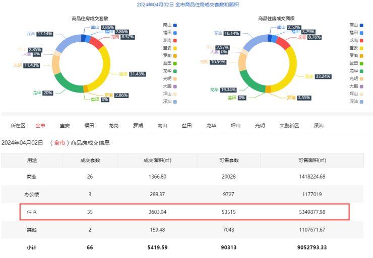 2024年4月2日新房住宅共网签35套。宝安11套;福田1套;龙岗3套;罗湖1套;南山1套;盐田0套;龙华7套;坪山1套;光明4套;大鹏0套;深汕6套。2024年4月2日二手房住宅网签218套。深圳2024年…