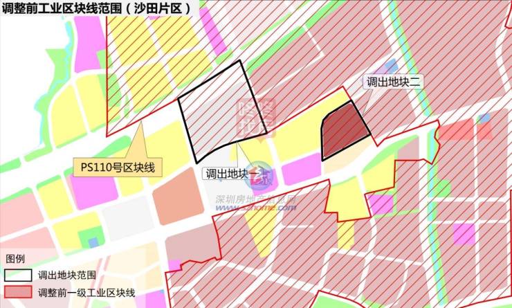 调出地块一位于坪山区坑梓街道,沈海高速、秀沙路交汇路口,面积12.06公顷,其中法定图则规划发展备用地(工业导向)面积7.6公顷;