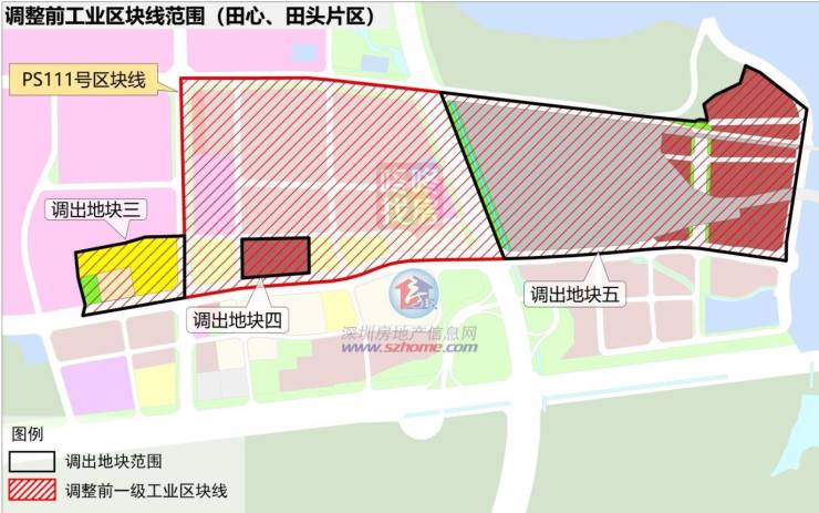 调出地块五位于坪山区石井街道,外环高速、兴田路、新联路、兰田路围合区域,面积44.16公顷,其中法定图则规划工业用地面积10.53公顷。