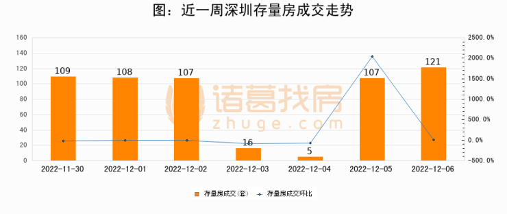 从存量房来看,2022年12月06日深圳存量房单日成交121套,比昨日增加14套,环比上涨13.1%。从近一周存量房成交来看,深圳存量房日均成交套数为81套,其中12月06日成交量最高为121套,12月06日单日成交121套,高于近一周平均水平49.4%。
