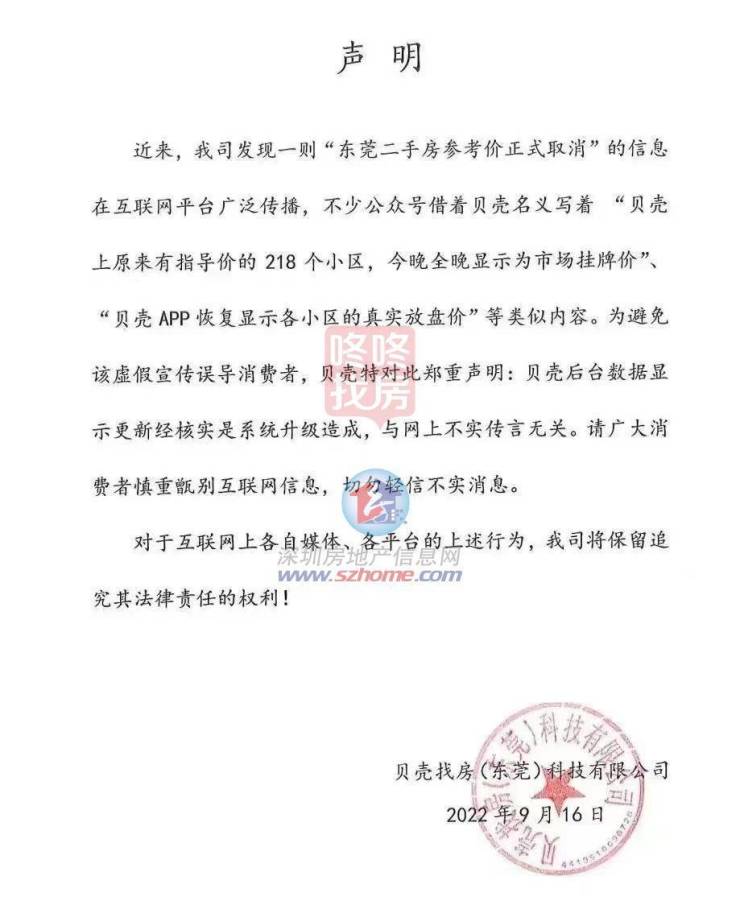 东莞取消二手房指导价?贝壳声明:系统升级造成