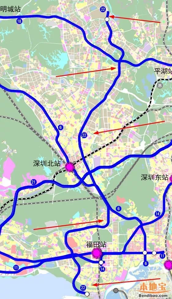 22号线直接联系观澜、民治至福田中心区,在龙华区内部还串联了民治中心、深圳北站商务区、观澜-龙华高新区、龙华北科技核、观澜老中心、观澜北汽车产业区等重点发展片区。