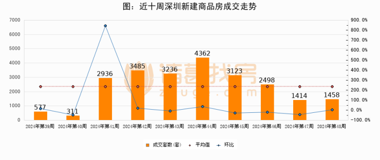【深圳成交周报】第48周新房成交1458套,二手房2196套,涨价房源182套