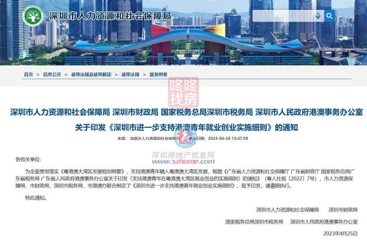 近日,深圳市人力资源和社会保障局、深圳市财政局、国家税务总局深圳市税务局、深圳市人民政府港澳事务办公室印发《深圳市进一步支持港澳青年就业创业实施细则》(以下简称《实施细则》)。