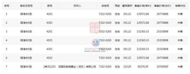 191平的户型备案价格区间约12.9万-13.2万平之间,119平米的户型备案价约9万/平。