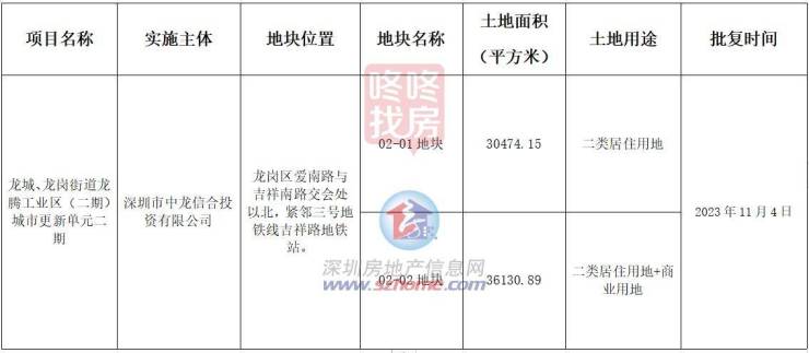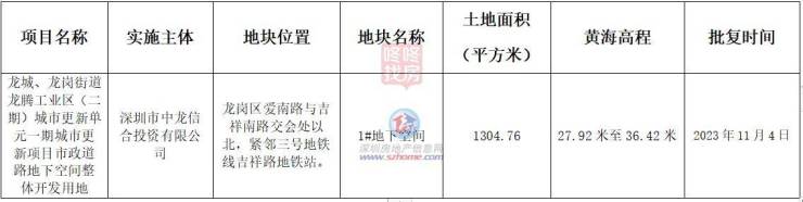 关于龙城、龙岗街道龙腾工业区(二期)城市更新单元二期城市更新项目建设用地批复的公告实施主体为深圳市中龙信合投资有限公司,地块位于龙岗区爱南路与吉祥南路交会处以北,紧邻三号地铁线吉祥路地铁站。