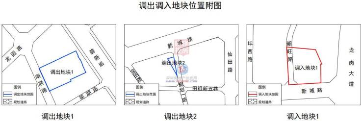 调出地块1位于龙岗街道,保留提升区面积13651.73平方米,位于深圳市龙岗区龙岗街道龙园社区南联路与龙园路交会处;调出地块2位于龙岗街道,保留提升区面积829平方米,位于深圳市龙岗区龙岗街道新生社区新城路与规划一路交会处。