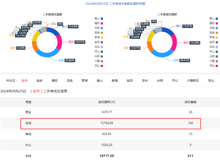 2024年9月25日二手房住宅网签166套。宝安25套;福田25套;龙岗49套;罗湖21套;南山27套;盐田3套;龙华14套;光明0套;坪山1套;大鹏1套。