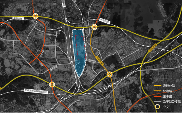 根据规划显示,项目周围路网环绕,南北分别紧邻机荷高速、水官高速;平盐铁路、平南铁路在项目地块交会,直通深圳港东西两大港区,并与京九铁路、港深铁路无缝衔接,具备发展公、铁、海多式联运综合物流枢纽的条件,项目建成后对于促进深圳市公、海、铁联运快速发展,进一步提升多式联运承载能力和衔接水平,补强深圳市铁路货运短板,实现绿色物流目标具有重要意义,对助力龙岗区制造业竞争力稳步提升,实体经济支撑作用更加稳固具有重要意义。