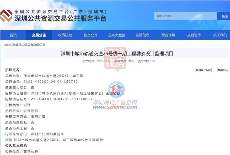 本次招标内容:深圳市城市轨道交通25号线一期工程为服务于龙岗、龙华、宝安的轨道普速线路,覆盖沿线吉华、坂田、龙华中心等人口和岗位密集区旺盛出行需求,支持坂雪岗科技城等重点片区发展。