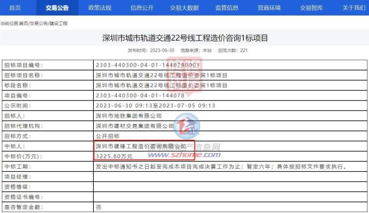 深圳市建锋工程造价咨询有限公司以3225.8万元中标。