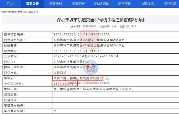 本次中深圳标内容:(1)22号线工程造价咨询2标:深圳市城市轨道交通22号线工程造价咨询2标为(松和站(含)-黎光站(含))、黎光车辆段(含出入线)、同步实施工程(包含上盖平台)和零星征拆工程的土建(含装修)、人防工程、前期工程的招标阶段、实施阶段及结算阶段的造价咨询服务工作。(2)除22号线全线通信、信号、轨道、供电专业之外的其他设备专业的招标阶段、实施阶段及结算阶段的造价咨询服务工作。