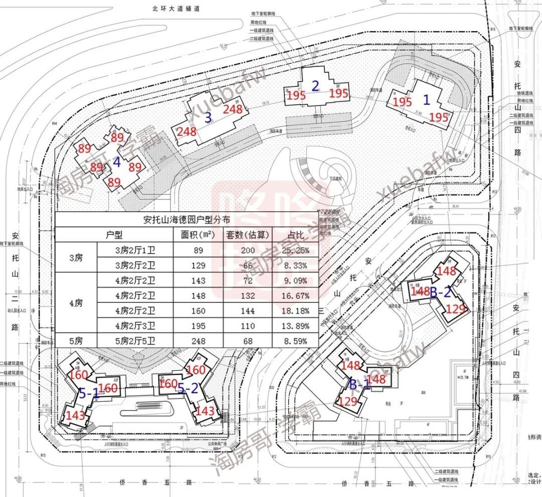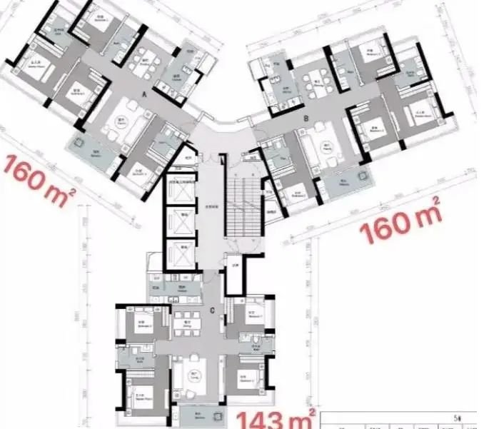 而同样有89㎡户型的华润城润府,一期还能做3房,而到后面二、三、四期的使用率偏低,89㎡只能做2房。这样看来,热度相当的海德园和华润城润玺二期在户型使用率上,还是海德园更胜一筹。5栋为两座42层的塔楼,预计推售143㎡4房2厅2卫和160㎡4房2厅2卫的户型,梯户比为3梯3户。