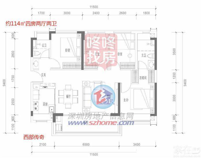 建面约114㎡四房两厅两卫
