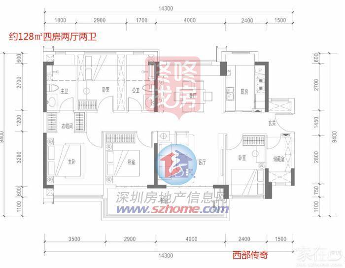 建面约128㎡四房两厅两卫