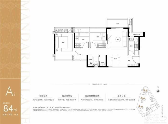 84平米三房两厅一卫