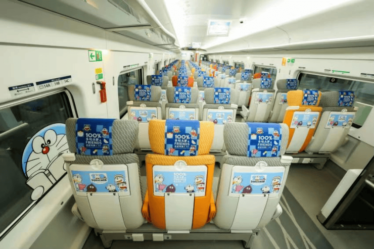 据悉,高铁多啦A梦主题列车集合超过50个特别造型布置,齐齐列队于车外及遍布于列车内不同位置,个别指定日子及班次由香港西九龙站出发的主题列车更增设了《100% 多啦A梦 & FRIENDS》座位头枕布,头枕布将于香港西九龙站B3层入闸登车时派发,每位主题列车的乘客限取一块,派完即止。