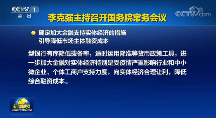 央行负责人表示,将按照国务院常务会议要求 ,适时运用降准等货币政策工具,进一步加大金融对实体经济特别是受疫情严重影响行业和中小微企业、个体工商户支持力度,向实体经济合理让利,降低综合融资成本。
