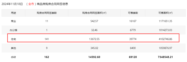 2024年11月18日新房购房合同网签141套,宝安45套;福田1套;龙岗18套;罗湖4套;南山1套;盐田3套;龙华44套;坪山2套;光明23套;大鹏0套;深汕0套。