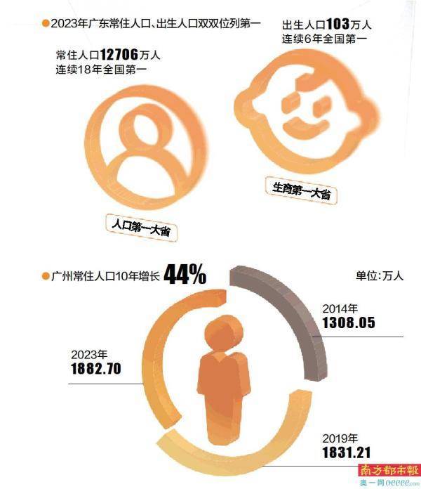 除了常住人口全国居首,广东还是全国“最能生”的省份,连续6年成为第一生育大省。2023年,全国出生人口为902万人,广东出生人口达到103万,是全国唯一超百万的省份。这意味着每10个新生儿里,至少有1个出生在广东。