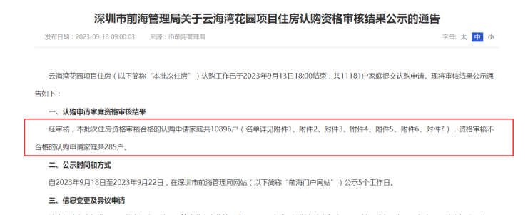 两房中签率约8.7%!1万+户家庭认购!前海深业云海湾公示认购资格审核结果