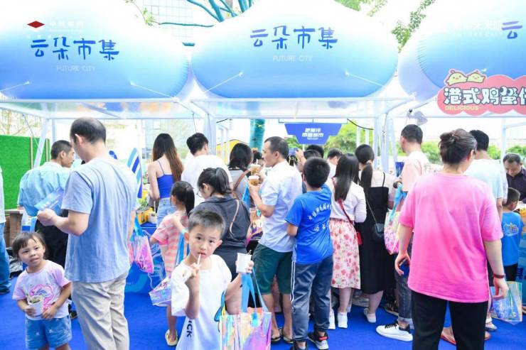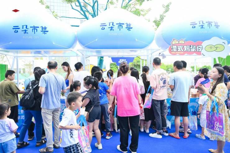 云朵市集开放,现场香甜鸡蛋仔、手打柠檬茶、巨香烤生蚝、网红冰淇淋等美食供应,带来满满人间烟火气。