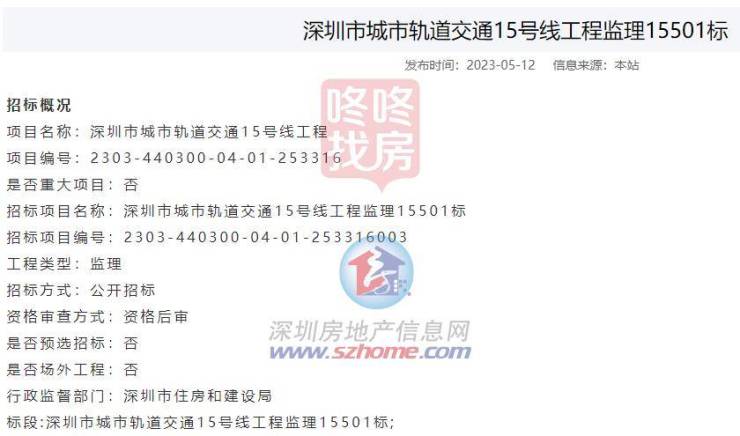 近日,深圳公共资源交易中心发布《深圳市城市轨道交通15号线工程监理15501标》招标公告。