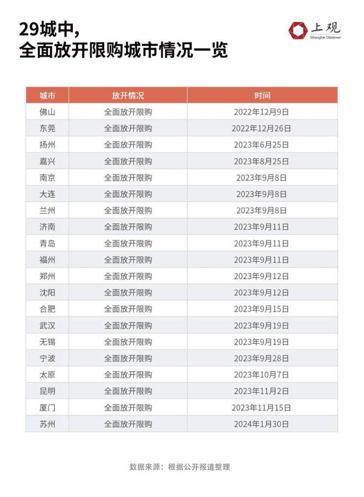 原标题:29个主要城市已有20城全面取消限购,下一个会是谁