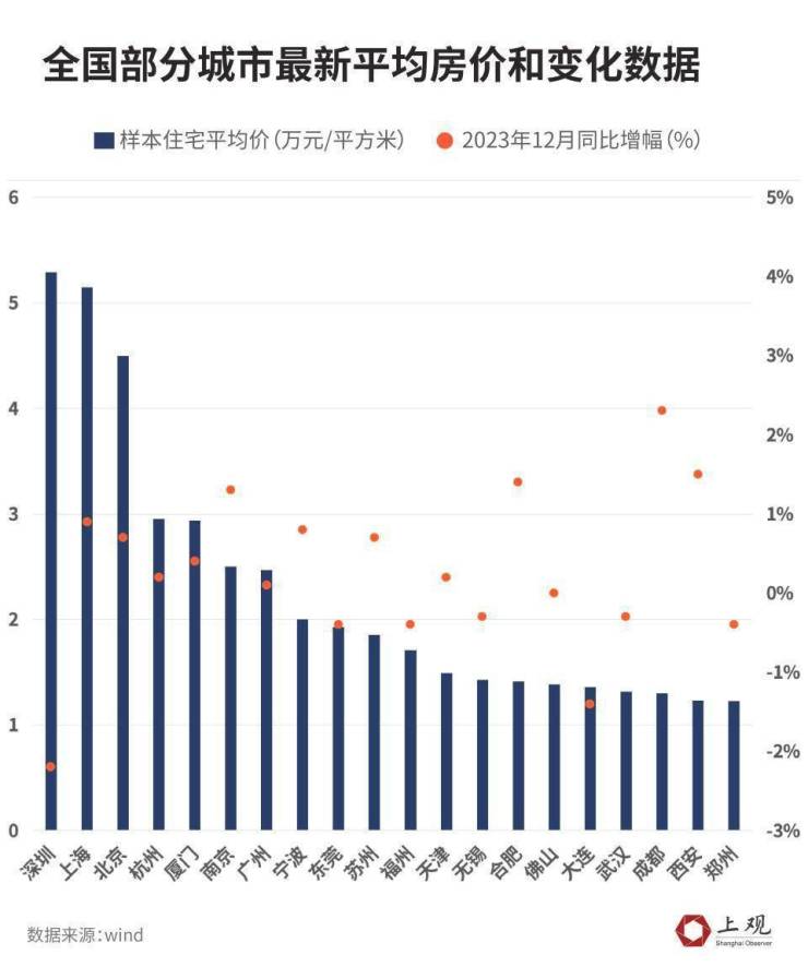 2023年,几乎各大城市的房价增幅都出现了下滑。