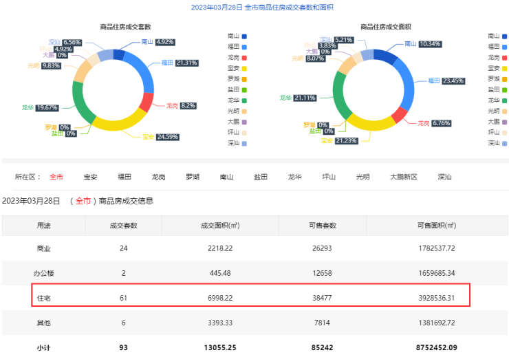 3月28日新房住宅共网签61套。其中南山3套;福田13套;罗湖0套;宝安15套;光明6套;龙岗5套;龙华12套;坪山3套;深汕4套;大鹏0套;盐田0套。3月28日二手房住宅网签167套。宝安17套;福田34套…