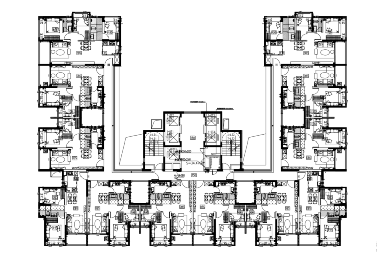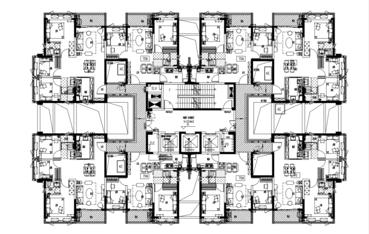 网上曝光了项目的户型图,每层8-12户,5梯12户、3梯8户结构,其中90㎡的户型位于端头位置,70㎡的户型在中间位置。