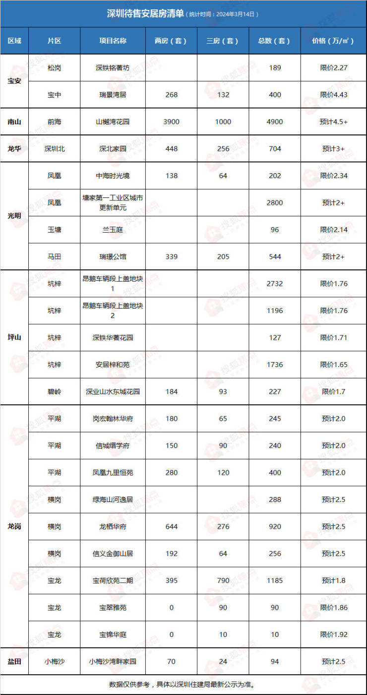 而据@搜狐焦点深圳 不完全统计,深圳待配售的安居房还有23盘,大家且买且珍惜。