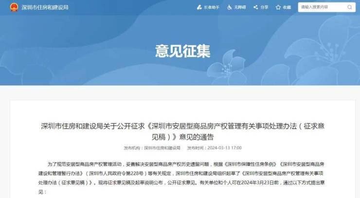 就在昨日(3月13日),市住建局发布了《深圳市安居型商品房产权管理有关事项处理办法(征求意见稿)》(以下简称《征求意见稿》),主要内容包括: