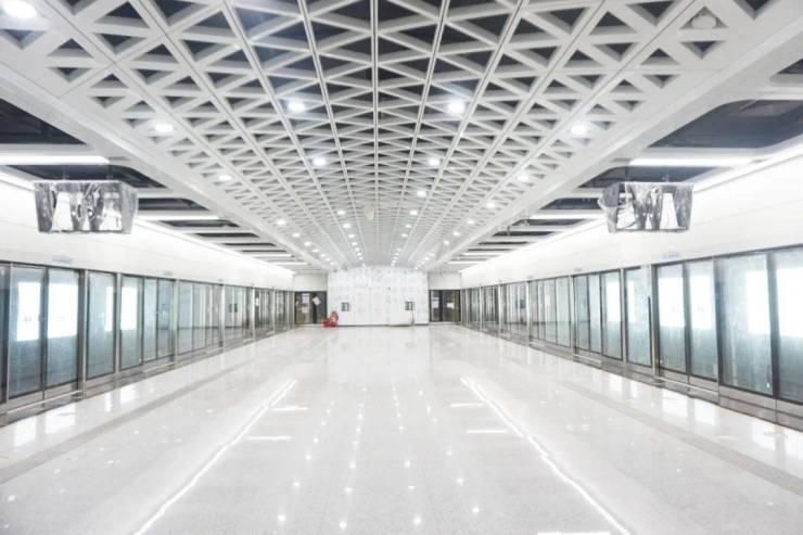 此站采用无柱拱形建筑设计,空间感极强,在装修设计上提取了大运中心体育馆三角造型,结合“阳光+家”设计理念,在整个拱形顶中间部位设计一道“金色阳光”,给人一种温暖如家的感觉。