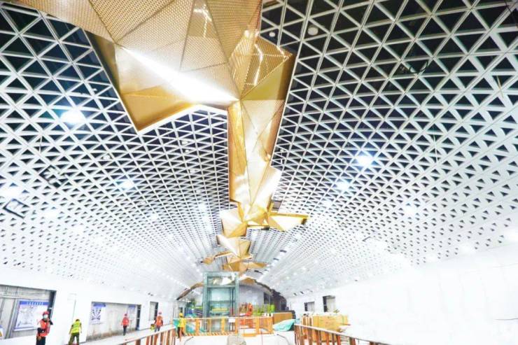 日前,深圳地铁16号线大运中心站已基本完成装修,该站较具特色的“金色大厅”也同步亮相。