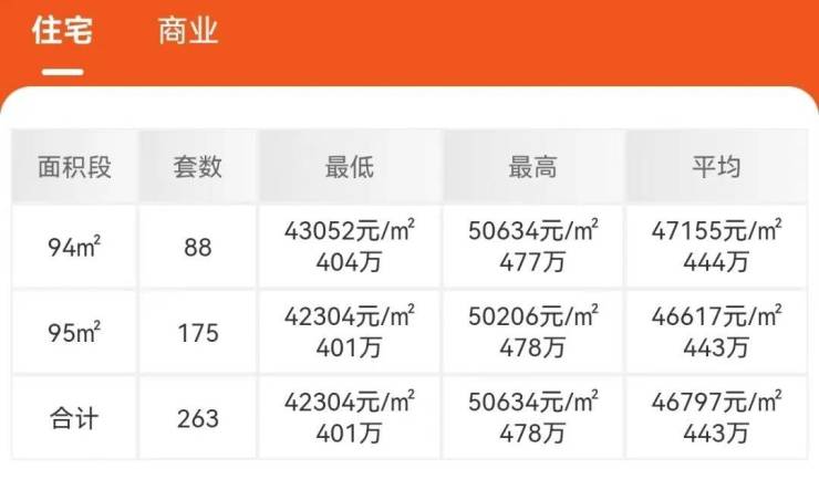 昭华里推出263套住宅,产品为建面约94-95㎡的3房,备案均价约4.68万/㎡,单价区间约4.23-5.06万/㎡,总价约401万/套起,带装修交付。