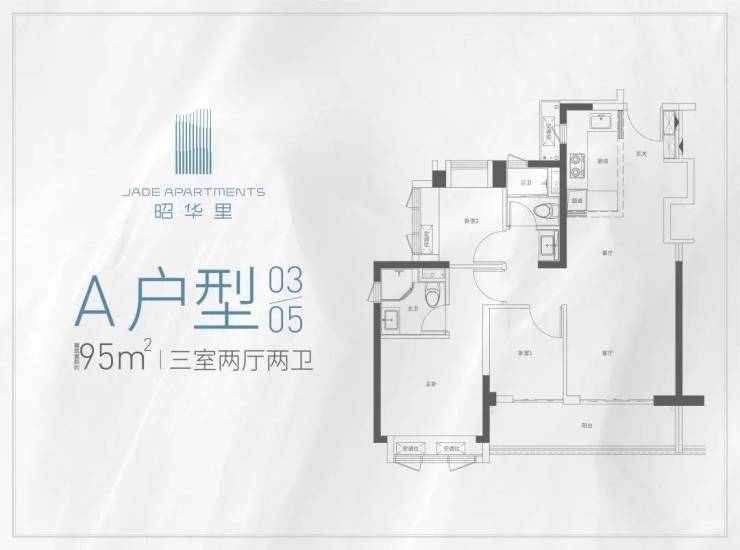 昭华里主推建面约95㎡3房单位,目前项目城市展厅开放中,样板间尚未开放。目前公示了3种户型图,主要分为横厅和竖厅设计。
