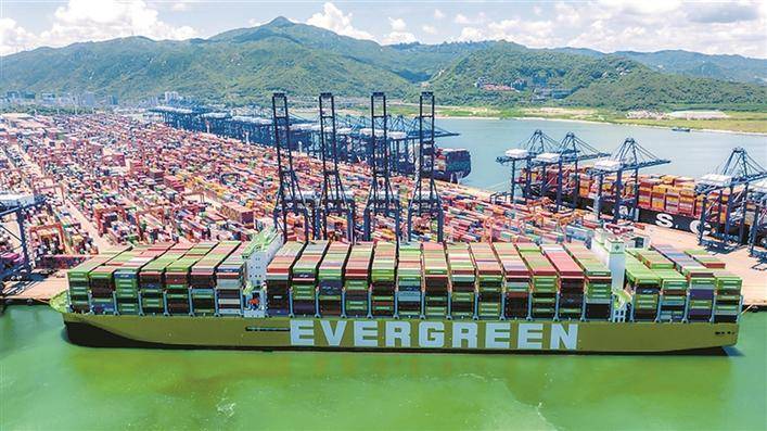 7月8日,首艘中国制造全球较大集装箱船“长益”轮停靠在全球较大单体集装箱码头——盐田港。“长益”轮是中国船舶集团旗下沪东中华造船(集团)有限公司为长荣海运建造的装载量达24004标箱超大型集装箱船。
