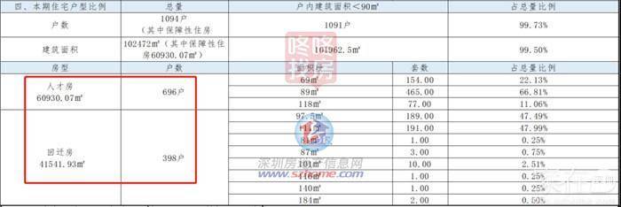 据规划显示,人才户型户型区间建面约为69-118㎡,其中,69㎡ 三房户型154套,89㎡3房户型 465套,118㎡ 四房户型77套。