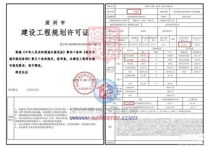 另一个位于宝安区的天和郡府(宝城43区碧海花园棚户区改造项目)公示《建设工程规划许可证》及总平面图,项目总建筑面积约17.6万㎡,规划总套数1094套(其中,696套人才房,回迁房398套)。