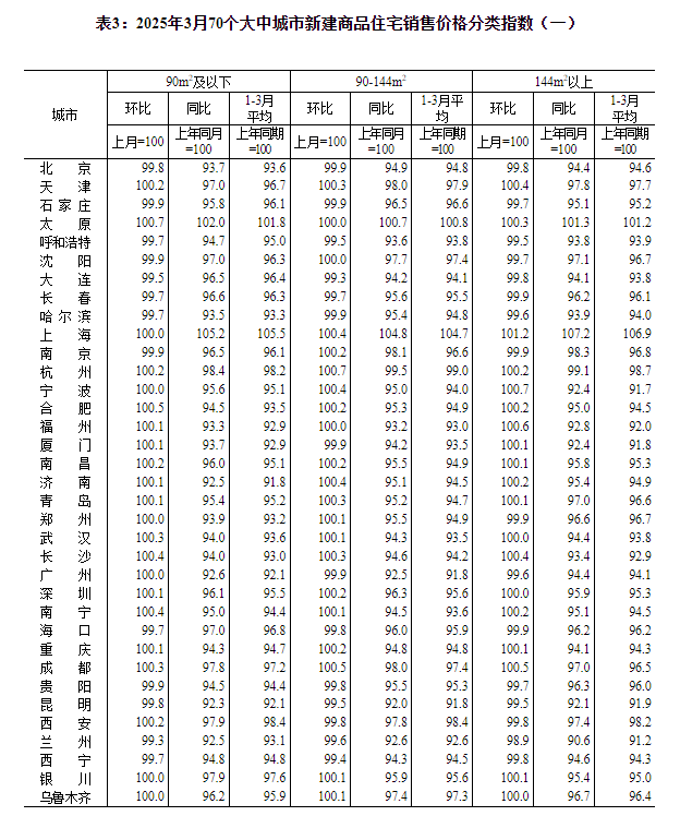 国家统计局城市司首席统计师王中华就2025年3月份商品住宅销售价格变动情况统计数据进行了解读。