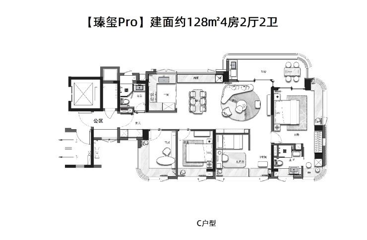 瑧玺Pro款:建面约128㎡4房2厅2卫(约80 套)。