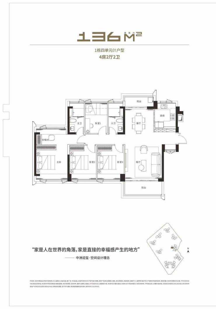 建面约136㎡舒适4房双阳台设计,户型通透;且开间均带有飘窗,主卧带有阔绰衣帽间和主卫。